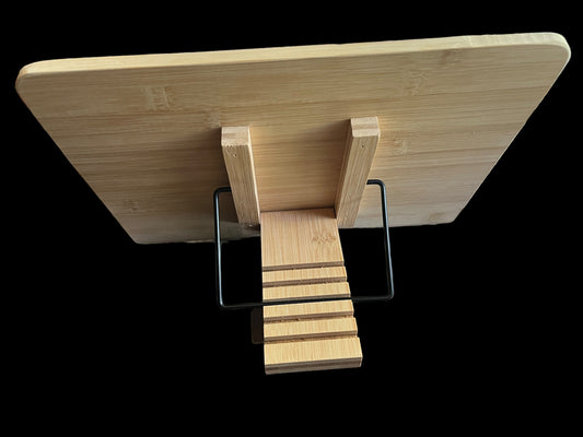 Cookbook Stand - Bamboo with 6 Angled Levels and Metal Pivoting Arms